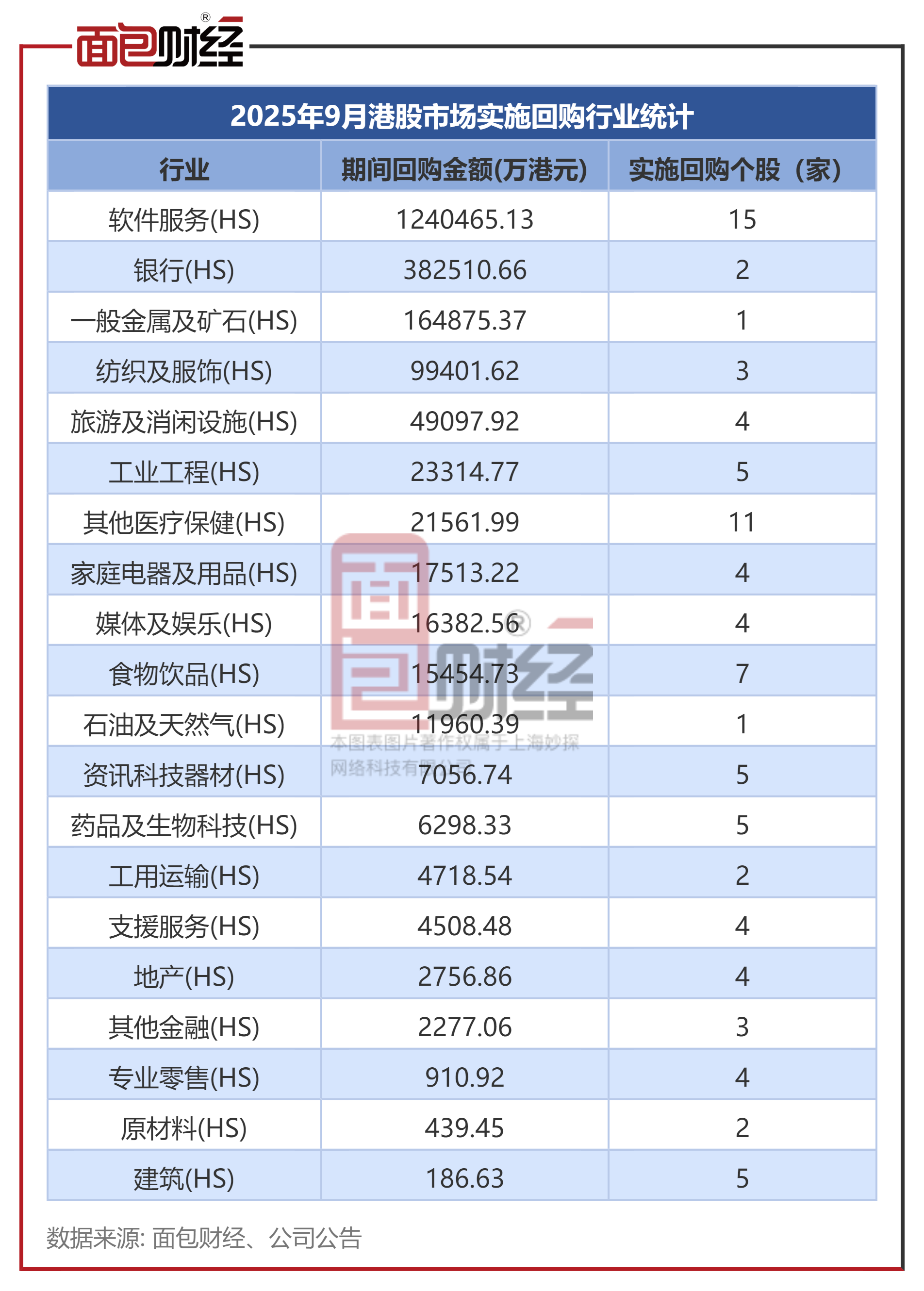 2025年9月發(fā)起回購(gòu)的港股上市公司,主要分布在軟件服務(wù)、其他醫(yī)療保健等行業(yè)。